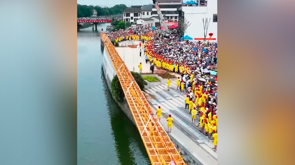 视频 | 湖南99.9米双桡龙舟霸气登江 可乘坐420名划手