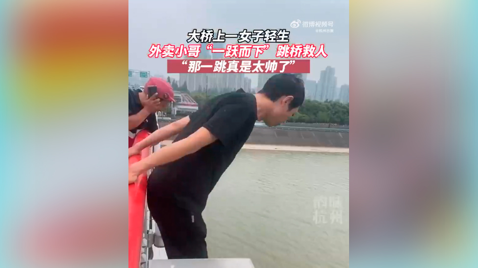 视频 | 外卖小哥“一跃而下”跳桥救下轻生女子