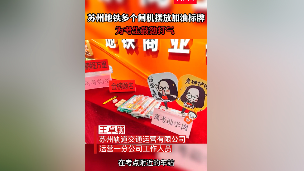 苏州地铁多个闸机摆放加油标牌 为考生鼓劲打气