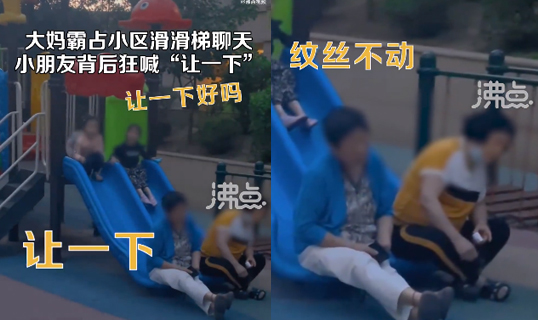 视频 | 大妈霸占小区滑滑梯聊天 小朋友背后狂喊“让一下”