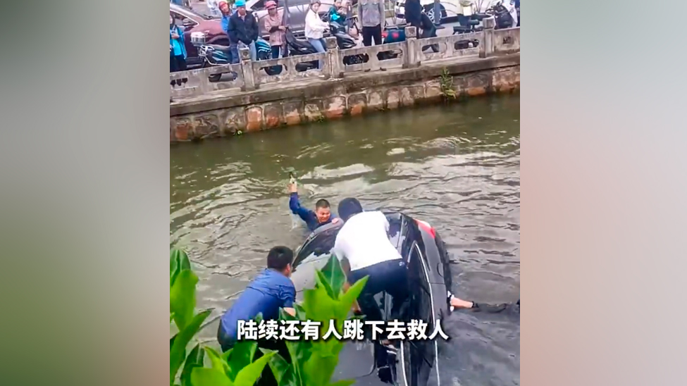 视频 | 那奋力一跃的姿势真帅! 小车坠河多人跳水砸窗救人