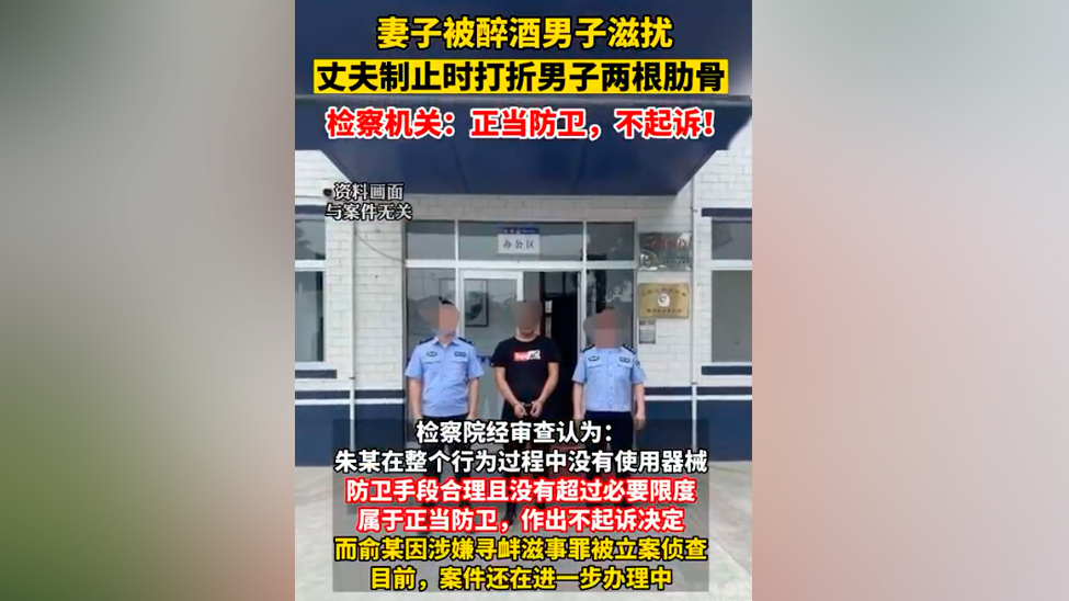视频 | 男子护妻打断醉酒男2根肋骨 检察机关:正当防卫,不起诉