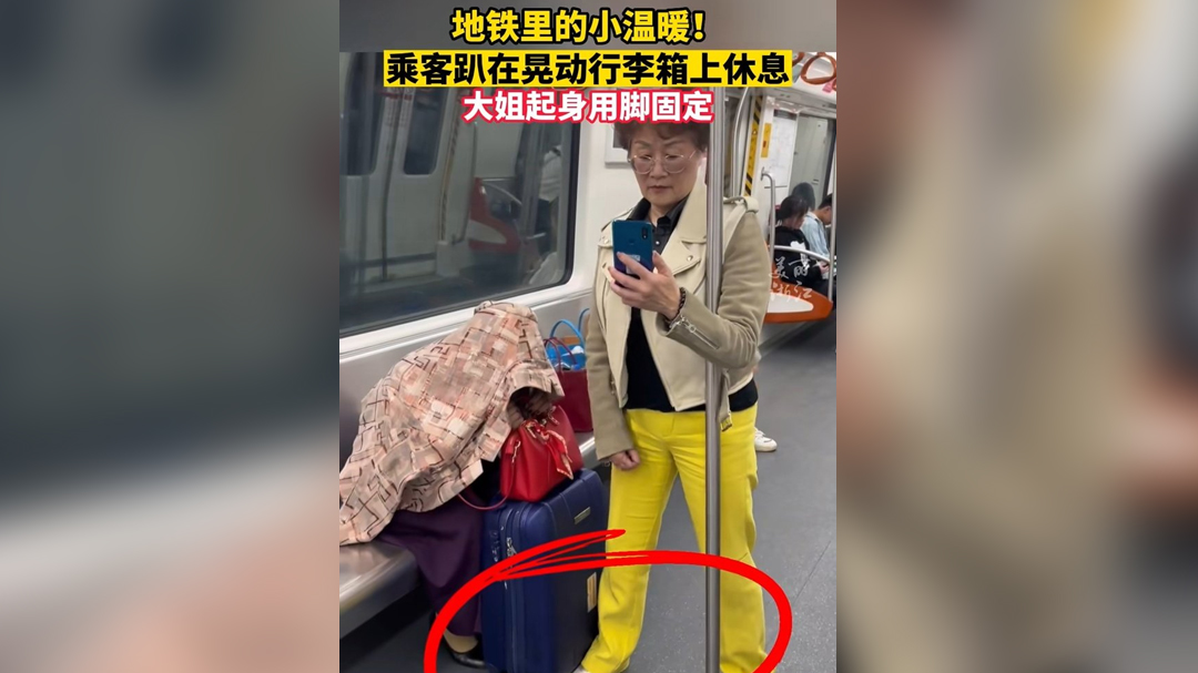 视频 | 太暖了!乘客趴行李箱休息 邻座起身帮她抵住箱子