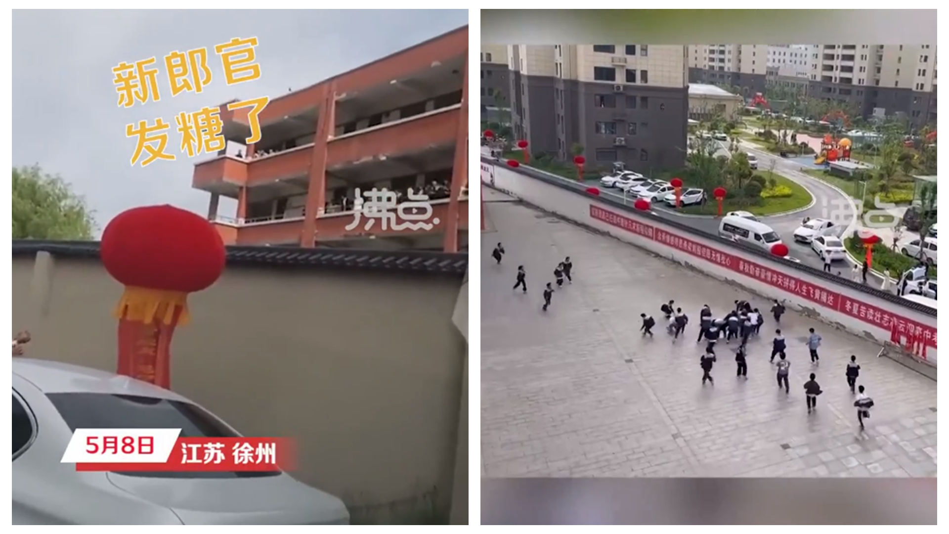 视频 | 新人结婚隔墙给中学生撒喜糖 拍摄者:很热闹 感觉回到了学生时代