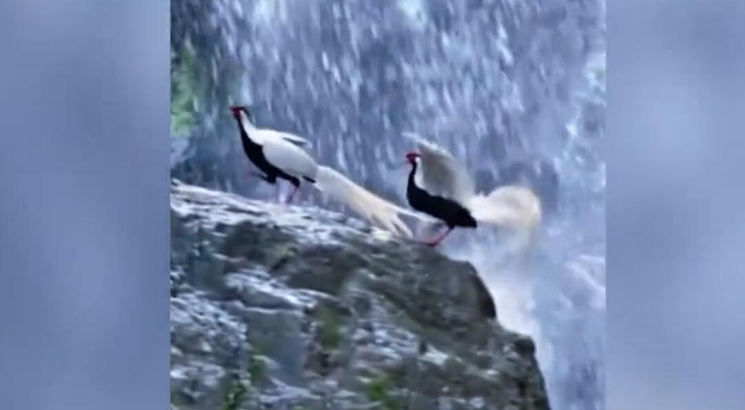 视频 | “白凤凰”双双飞跃瀑布:翩若惊鸿 长尾飘逸犹如林中仙子