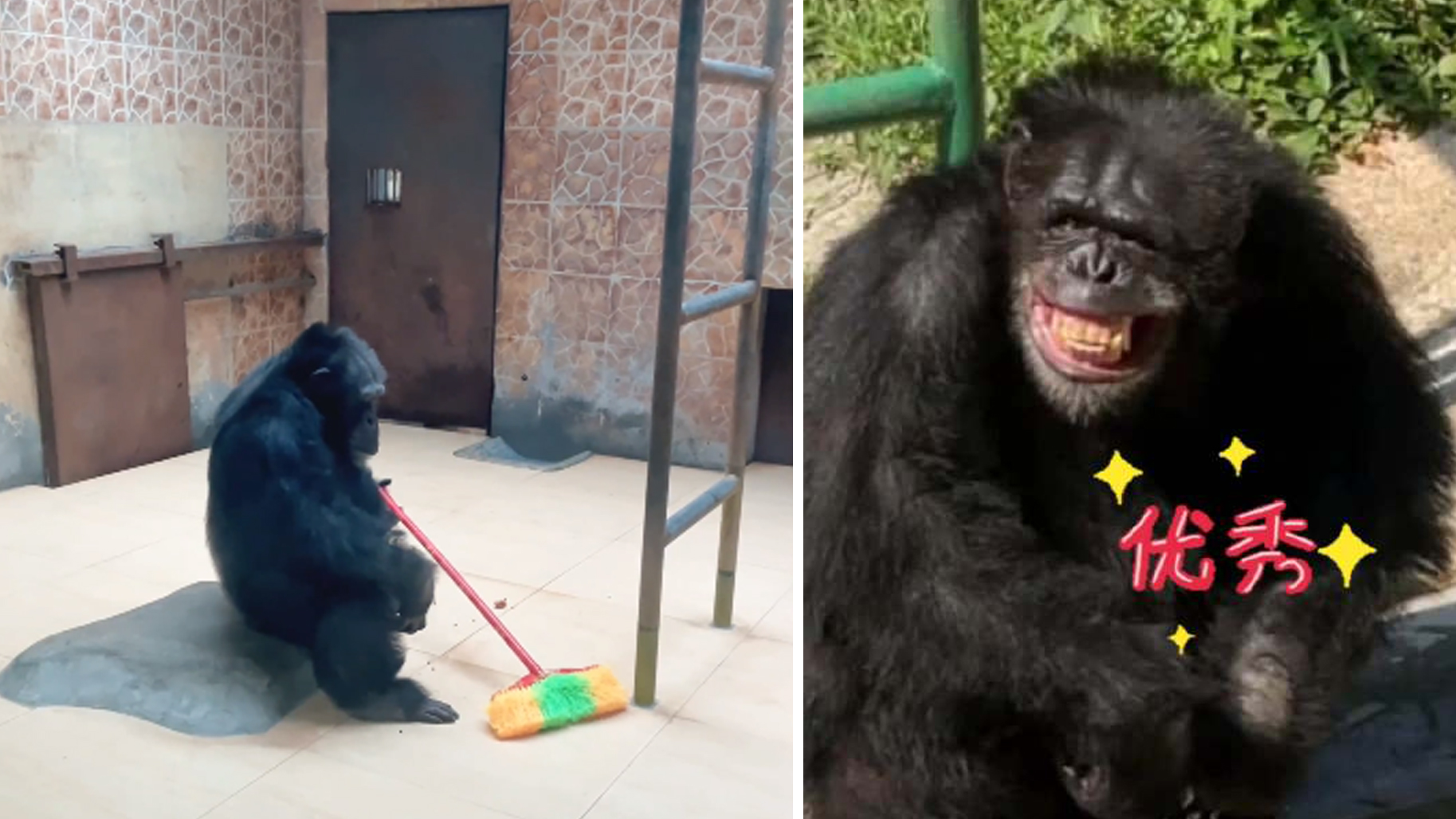 视频 | 太优秀!母胎solo黑猩猩一过节就给自己加戏