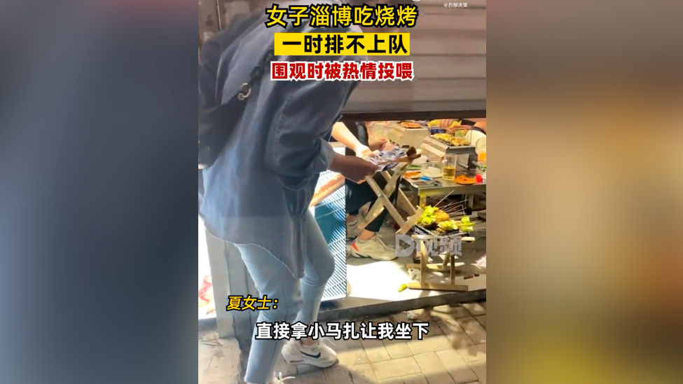 视频 | 女子在淄博吃烧烤排不上队被热情投喂:还拿小马扎让她坐下