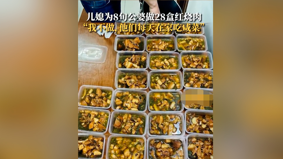 视频 | 儿媳假期回老家为八旬公婆做28盒红烧肉冷藏
