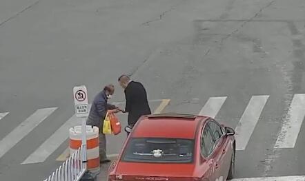 视频 | 监控下暖心一幕 盲人被困车流司机下车护送