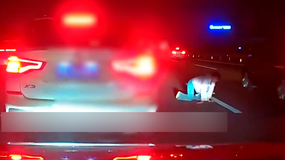 视频 | 惊魂一幕!男子夜晚高速路上开车看到女子跪地爬行 急刹后险撞到人