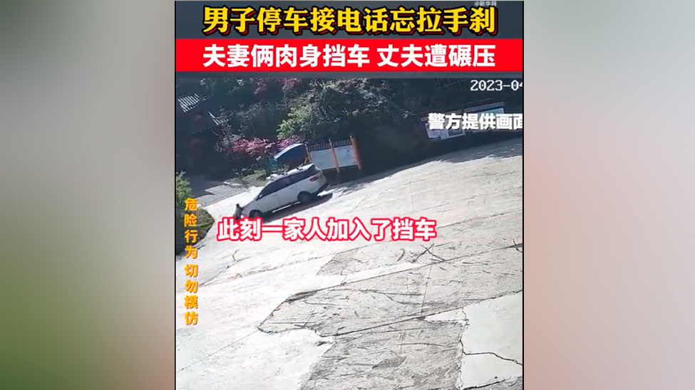 视频 | 因下车忘拉手刹车子溜坡 夫妻俩试图阻拦车子丈夫遭碾压