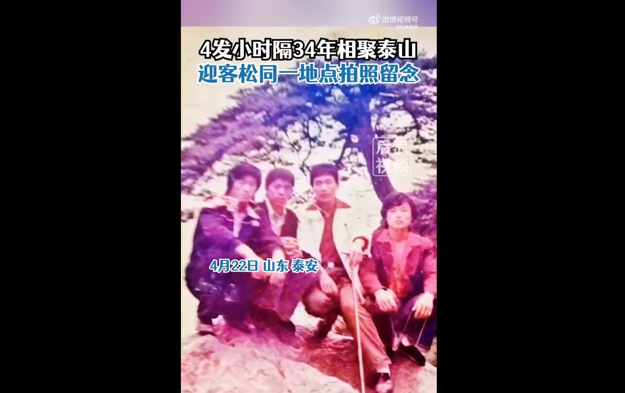 视频 | 时隔34年,4位发小相聚泰山迎客松合照