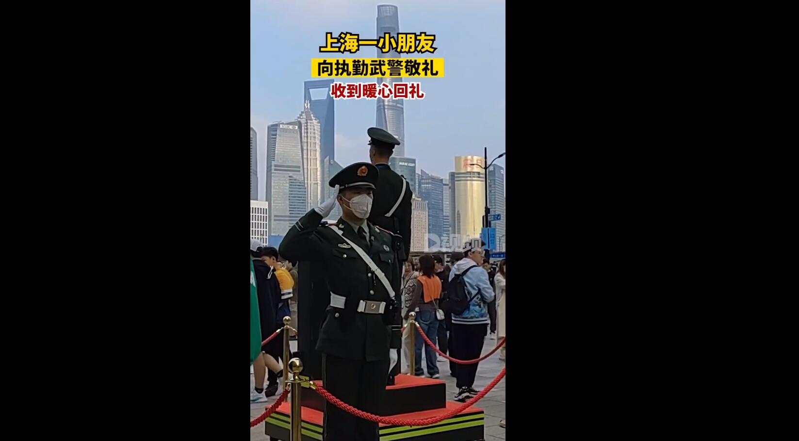 视频 | 上海执勤武警吸引中外游客合影:站姿笔挺,小男孩敬礼获回礼