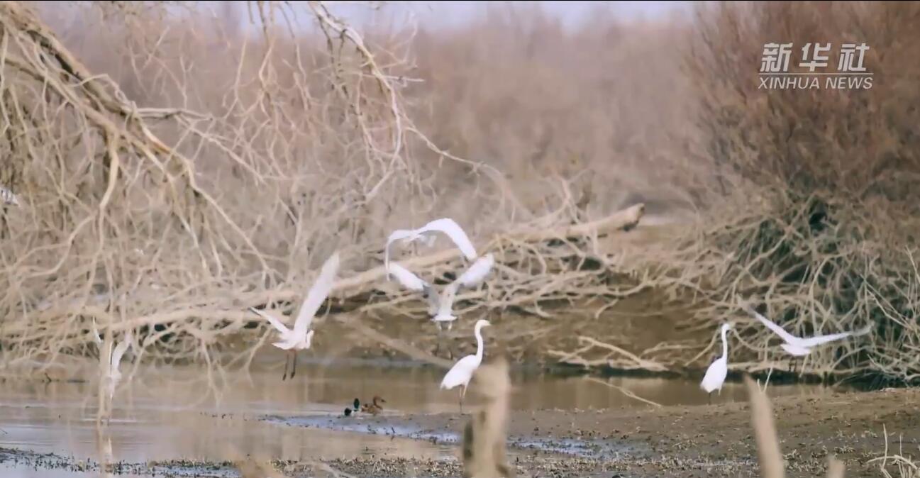 新疆塔里木河流域候鸟蹁跹 春意盎然