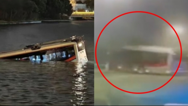 上海坠河公交车已被打捞上岸 行车记录仪拍下意外瞬间