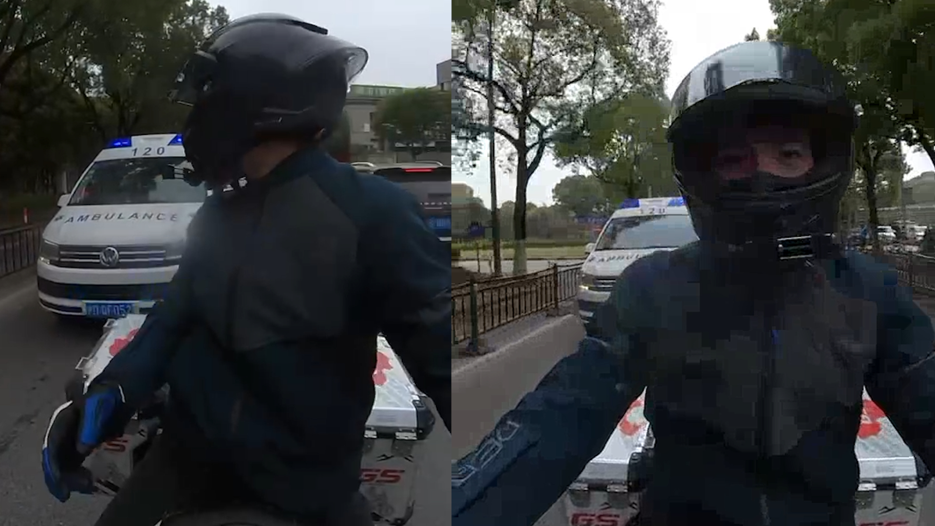 视频 | 早高峰救护车遇堵骑手挨个敲车窗提醒 成功让道后太帅