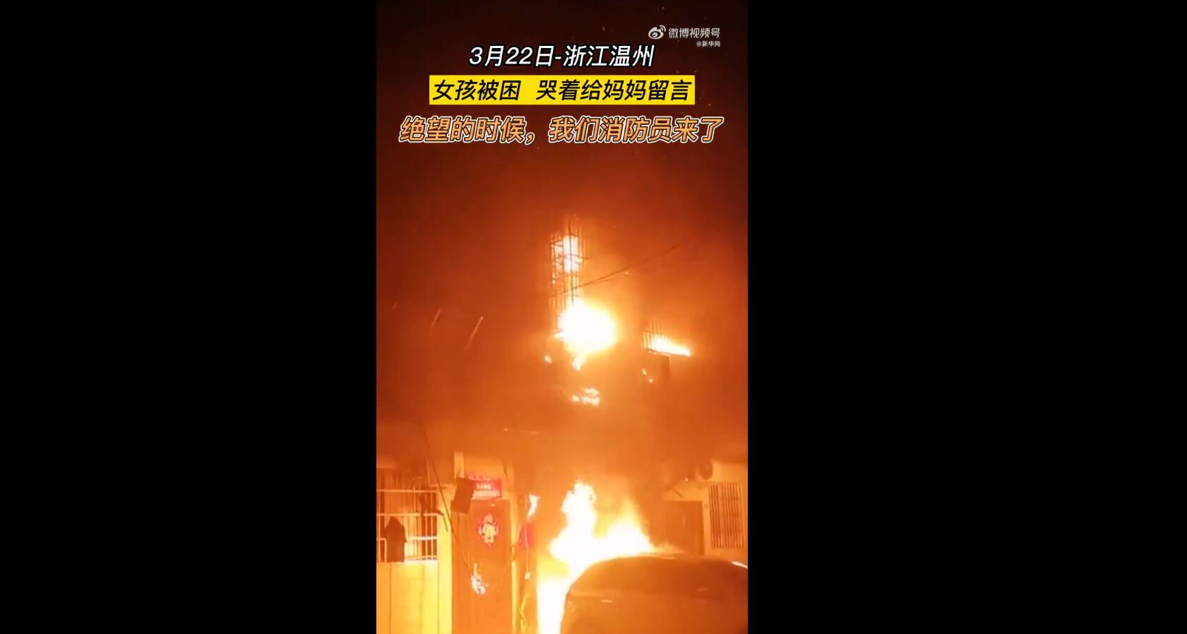 视频 | 被困大火中女孩哭着给妈妈留言 这时消防员冲了进来