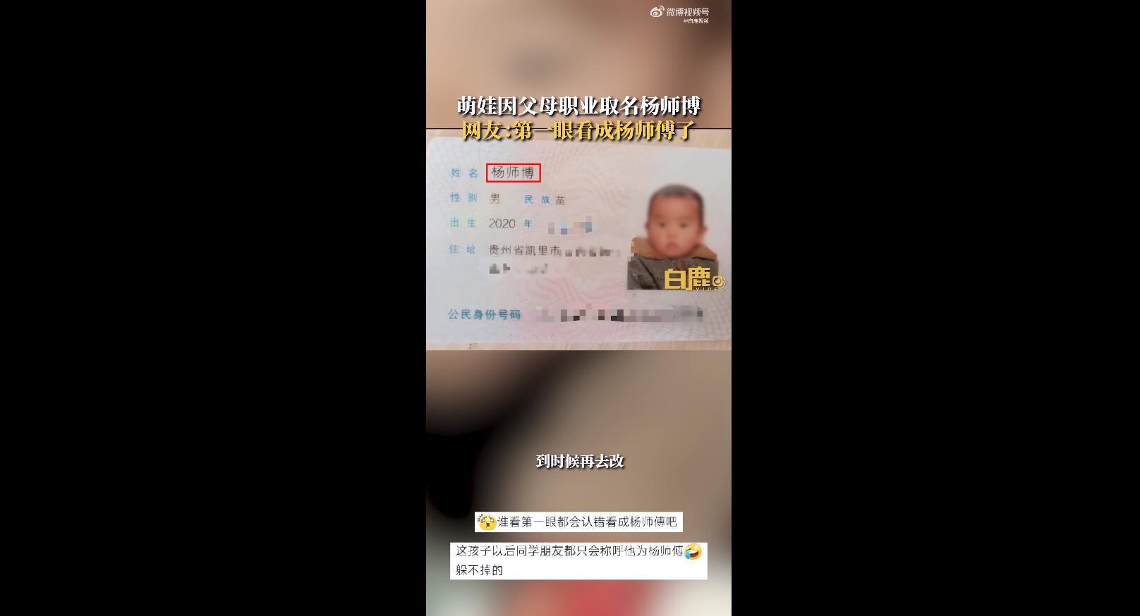 视频 | 父母因职业给娃取名杨师博引热议 网友:第一眼还以为是杨师傅