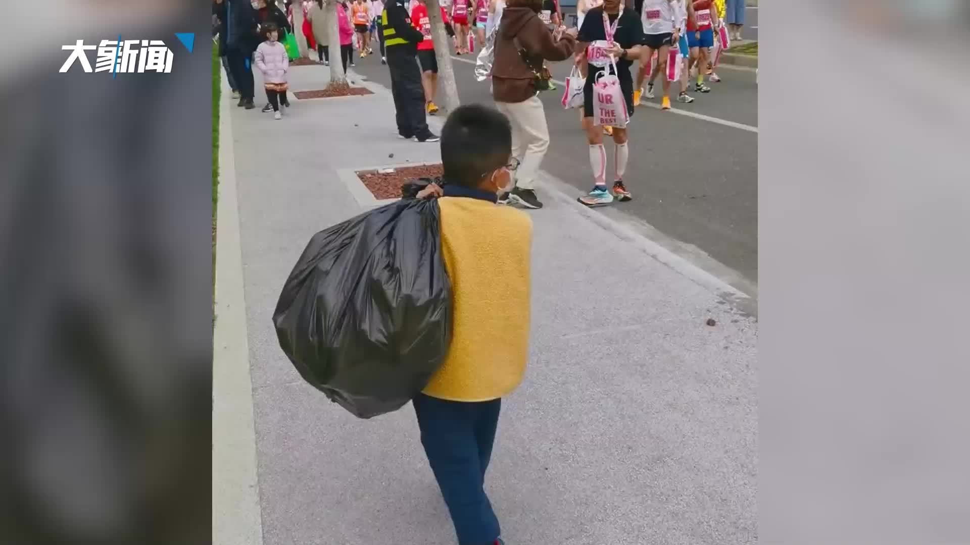 视频 | 懂事!六岁男童马拉松现场捡瓶子给自己买玩具