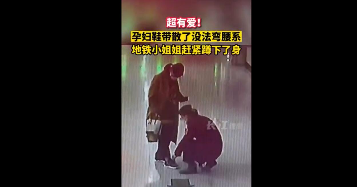 暖心!孕妇鞋带散开没法弯腰 乘务员蹲下帮忙系鞋带