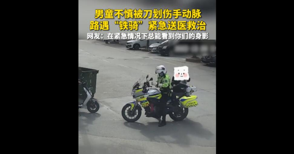 男童不慎被刀划伤手动脉 路遇“铁骑”紧急送医救治