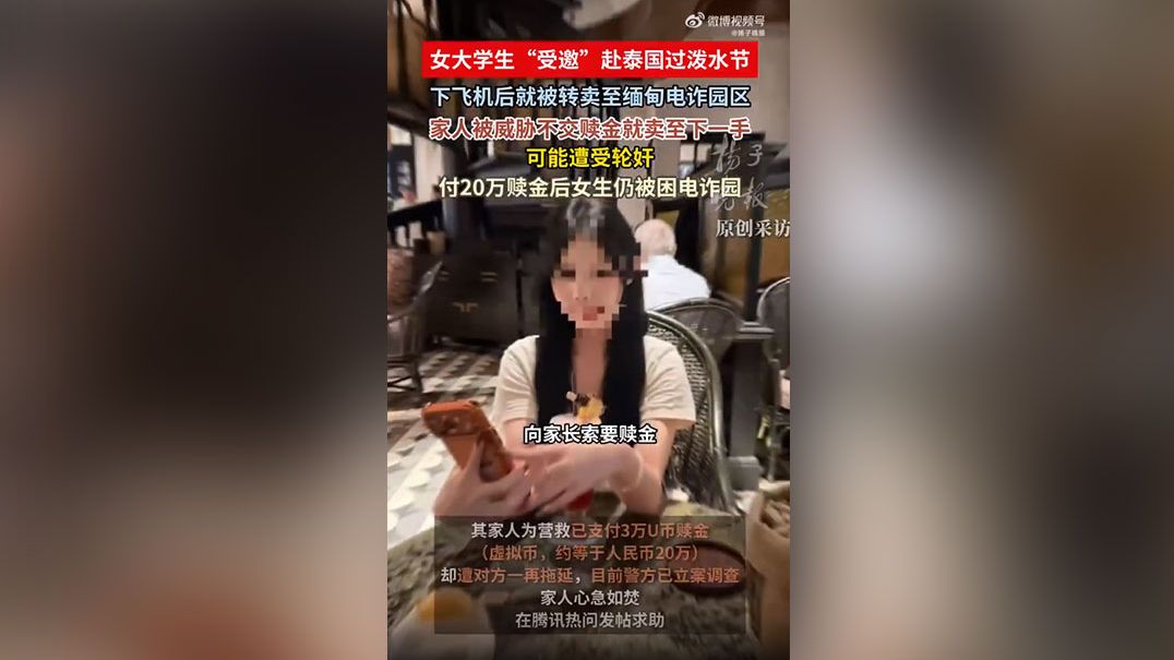 女生受邀去泰国泼水节被转卖电诈园 家人为营救已支付20万元赎金