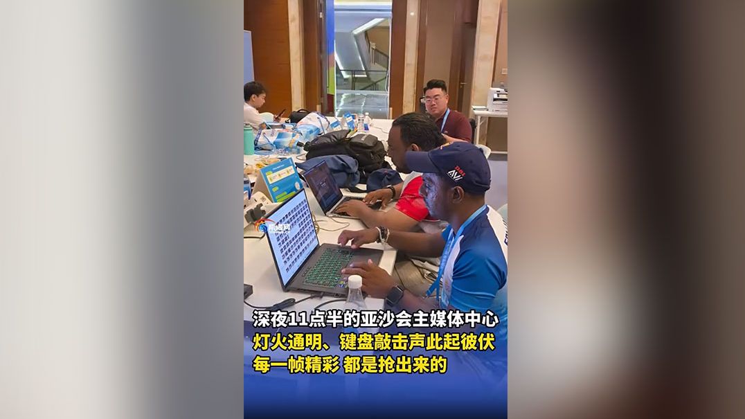 深夜11点半的亚沙会主媒体中心,灯火通明、键盘敲击声此起彼伏,每一帧精彩,都是抢出来的