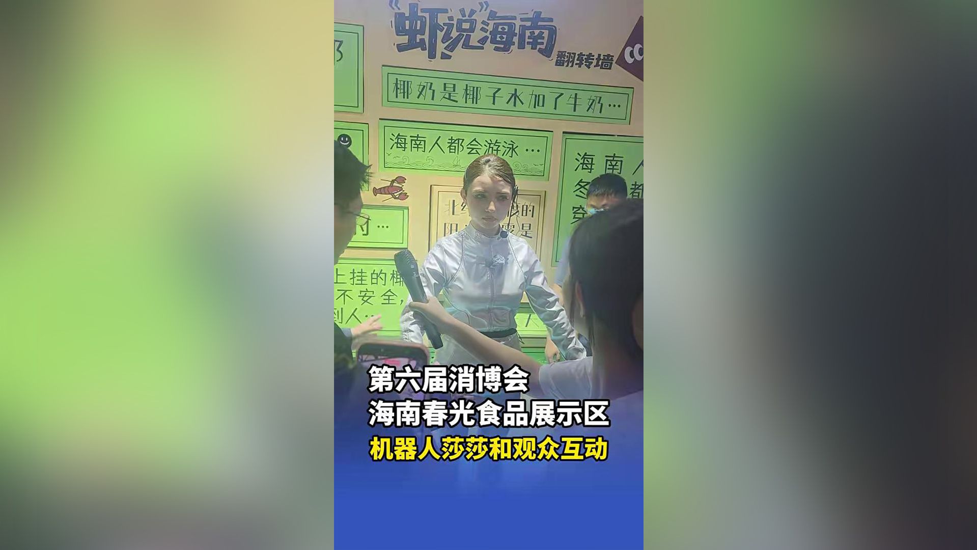 第六届消博会海南春光食品展示区 机器人莎莎和观众互动