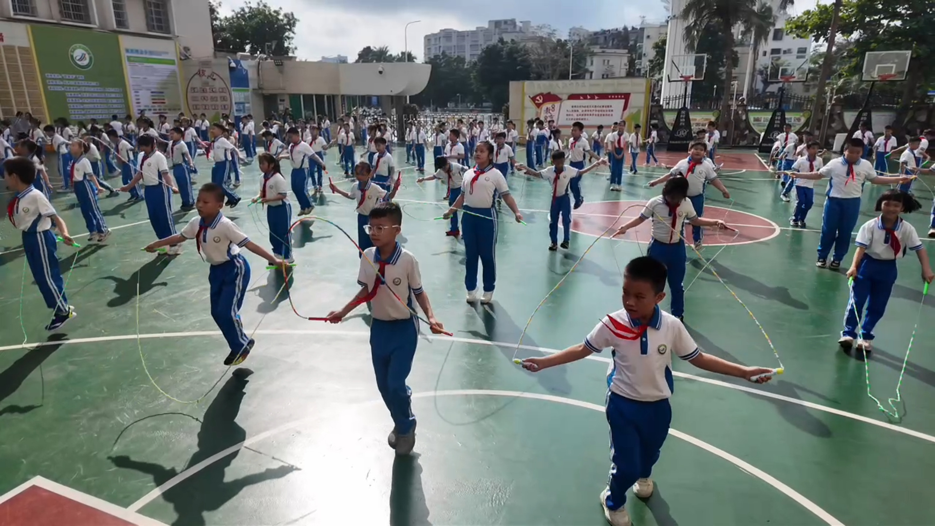 默契度拉满!海南中小学生10人同步跳绳比赛,1分钟258次夺冠