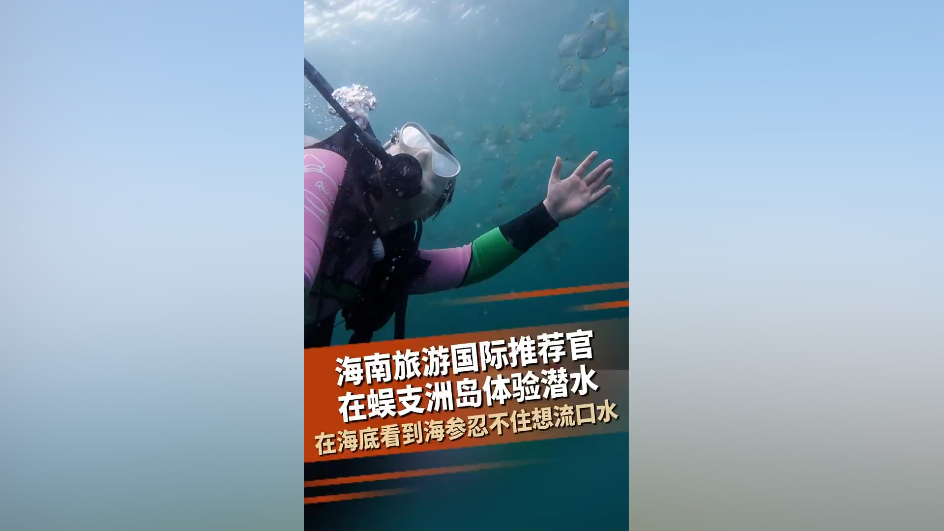 海南旅游国际推荐官在蜈支洲岛体验潜水 在海底看到海参忍不住想流口水