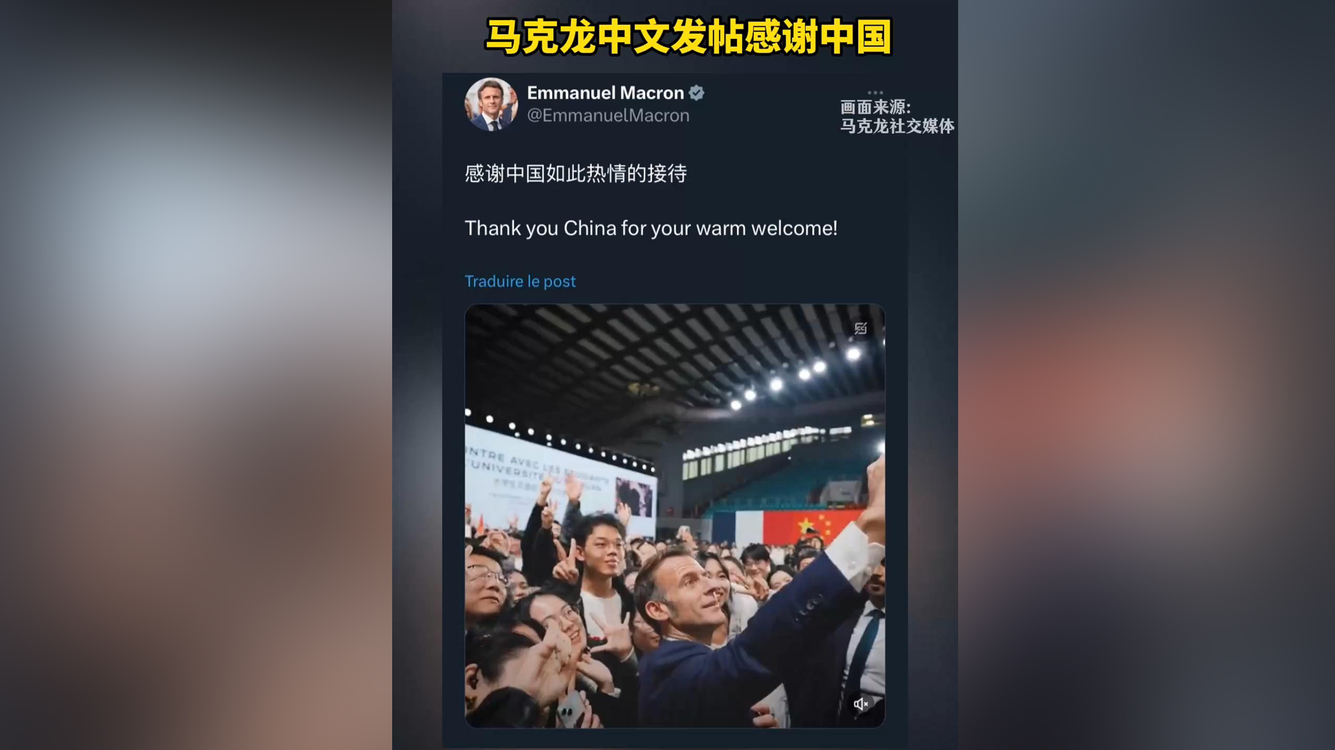 马克龙中文发帖感谢中国