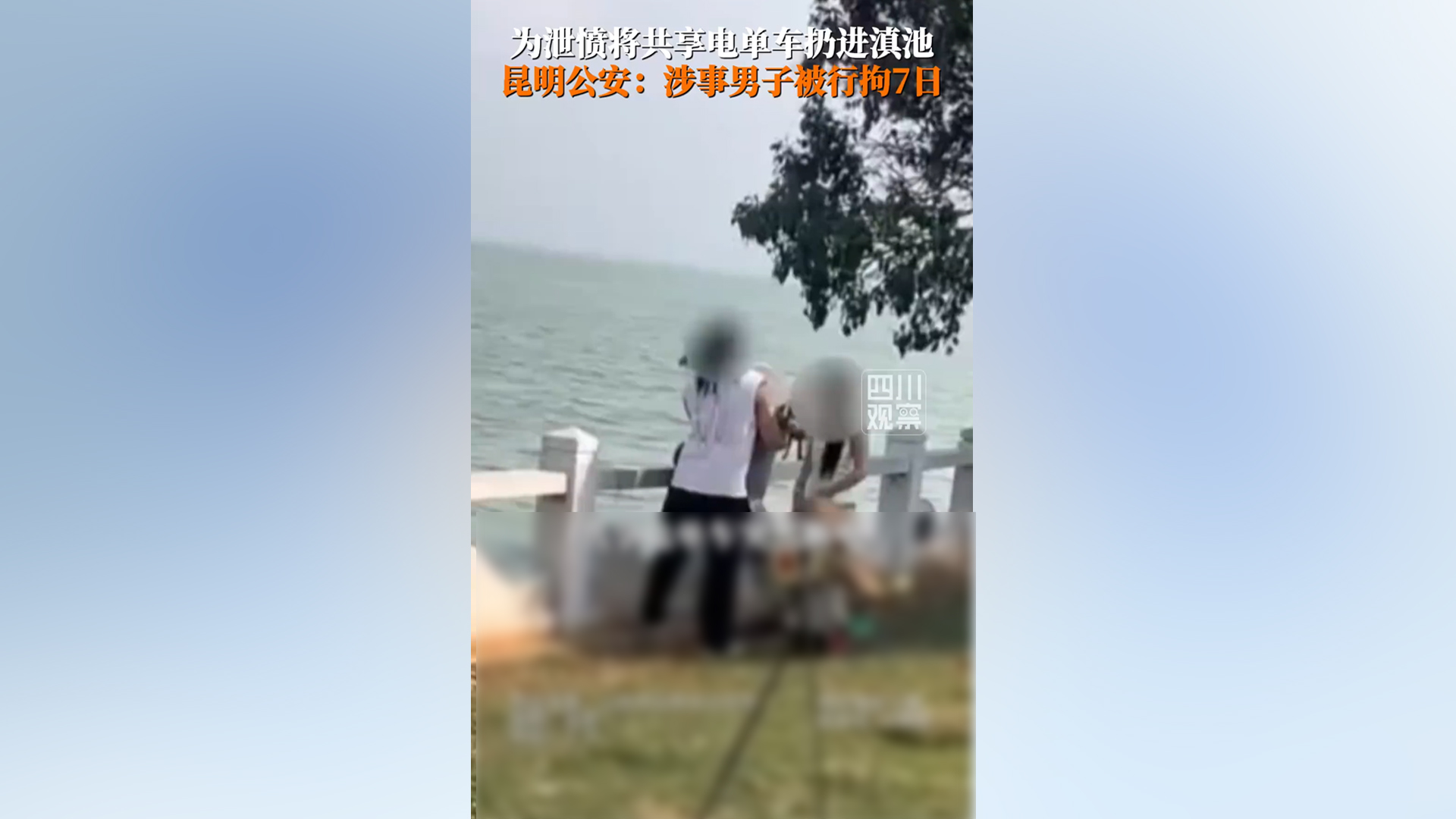 男子为泄愤将共享电单车扔进滇池被拘7天