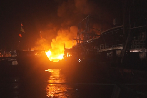 临高:调楼镇厚水湾18艘渔船着火 无人员伤亡