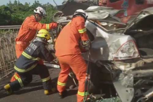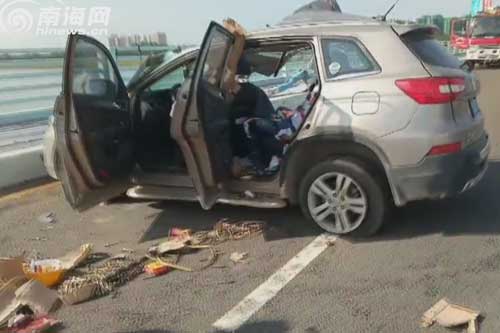 海口:驾车吵架司机赌气撞向路灯 5人受伤