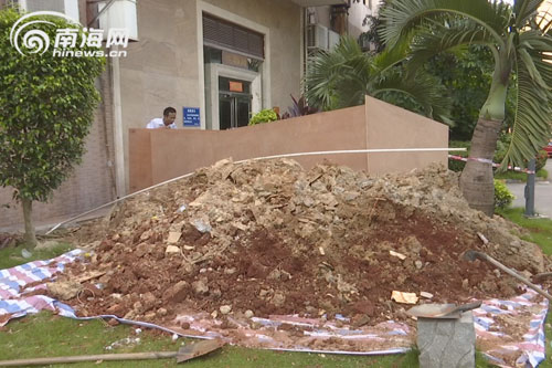 海口南滨骏园小区业主投诉物业挖绿化带施工 城管责令整改
