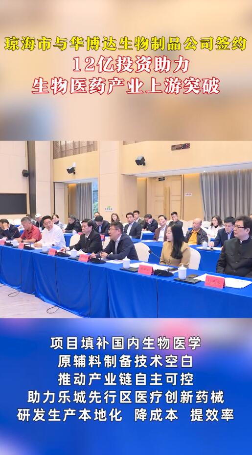视频 | 琼海市与华博达生物制品公司签约,12亿投资助力生物医药产业上游突破
