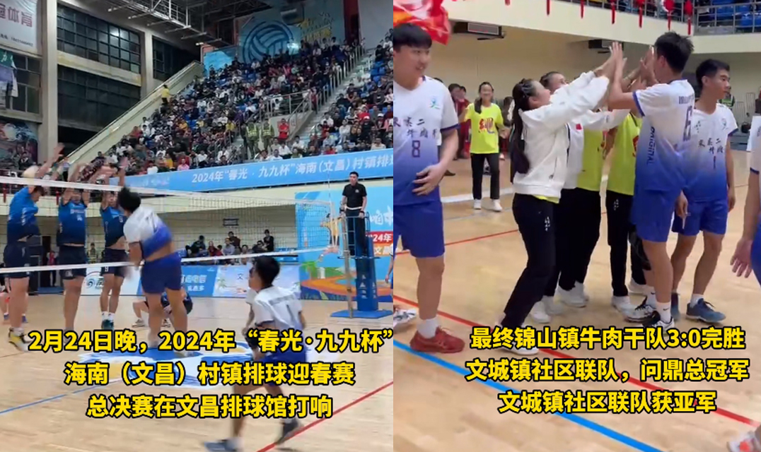 视频丨冠军出炉!2024年“春光·九九杯”海南(文昌)村镇排球迎春赛,锦山镇牛肉干队3:0完胜文城镇社区联队