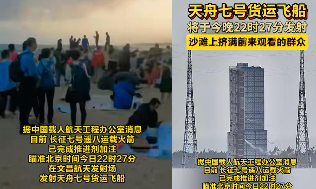 天舟七号货运飞船将于1月17日22时27分发射,沙滩上挤满前来观看的群众