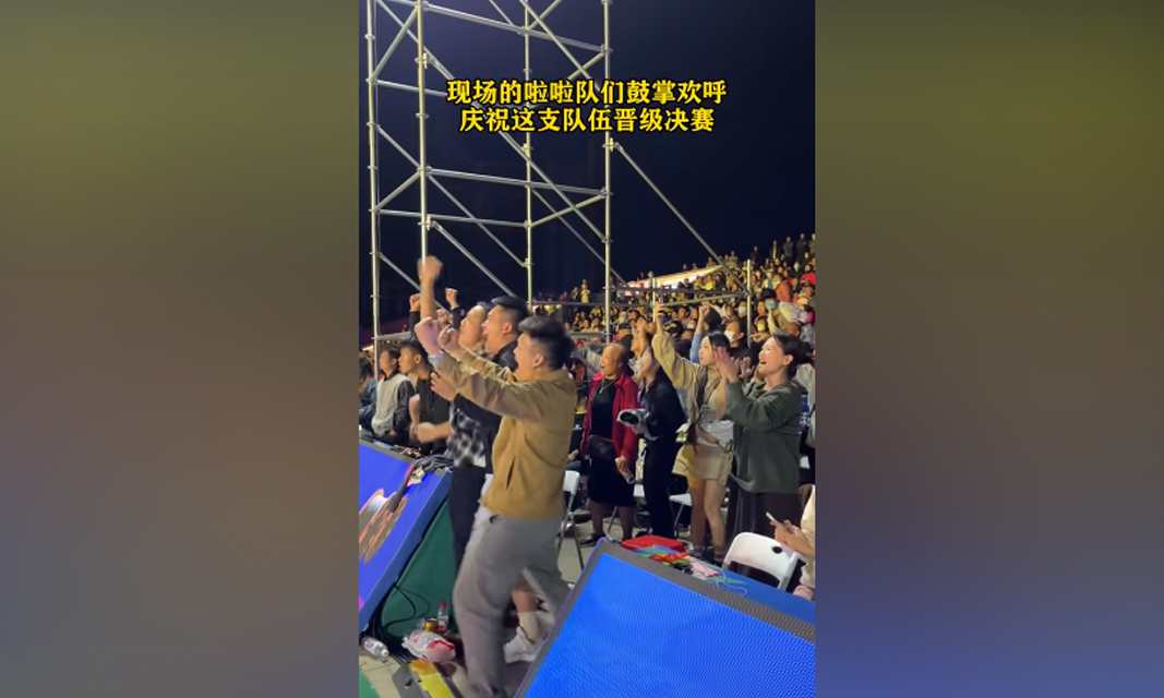 海南东方“村BA”半决赛之夜,福耀社区队逆转战胜那文村队,啦啦队们鼓掌欢呼