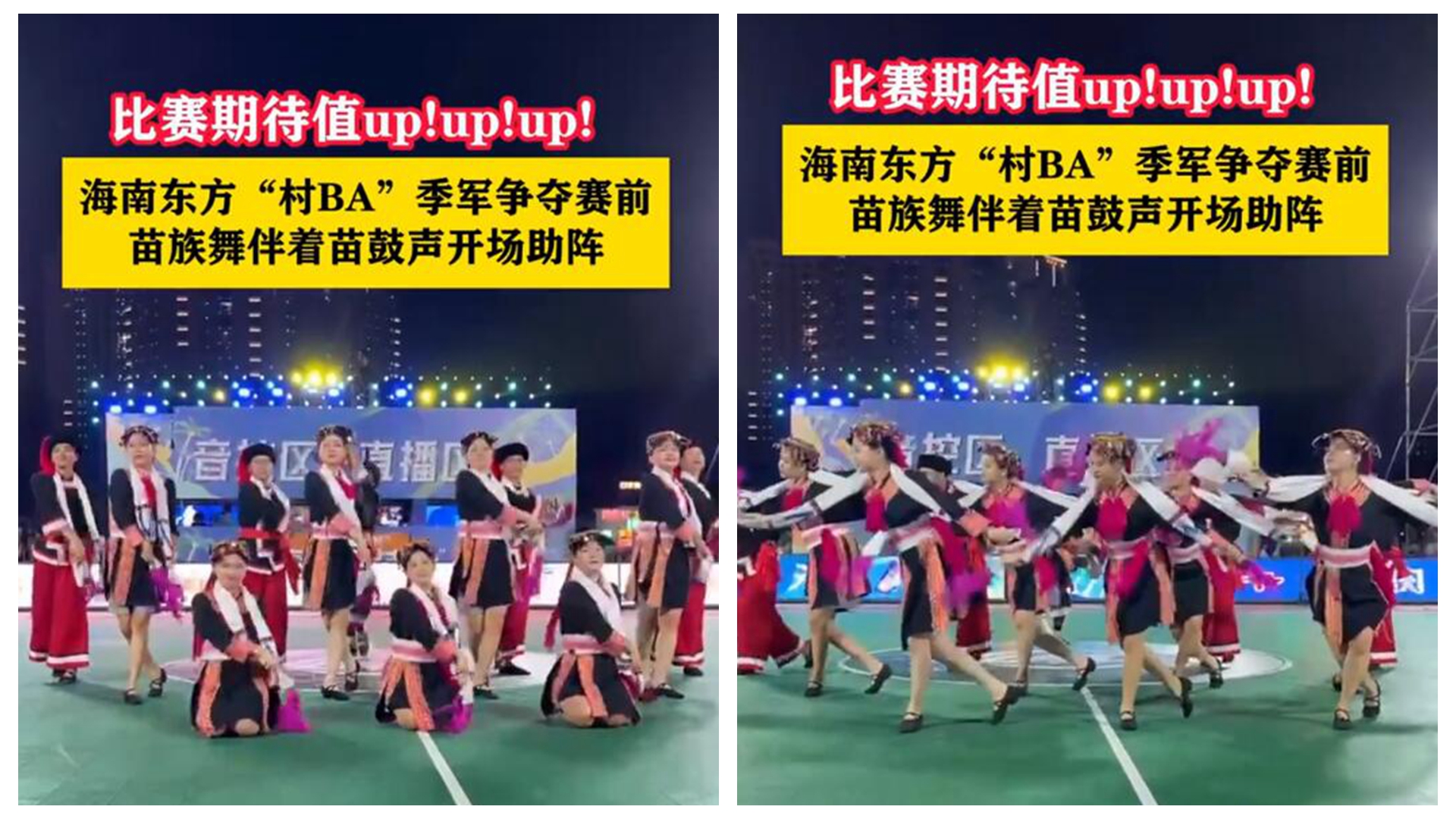 视频 | 比赛期待值up!up!up! 海南东方“村BA”季军争夺赛前 苗族舞伴着苗鼓声开场助阵