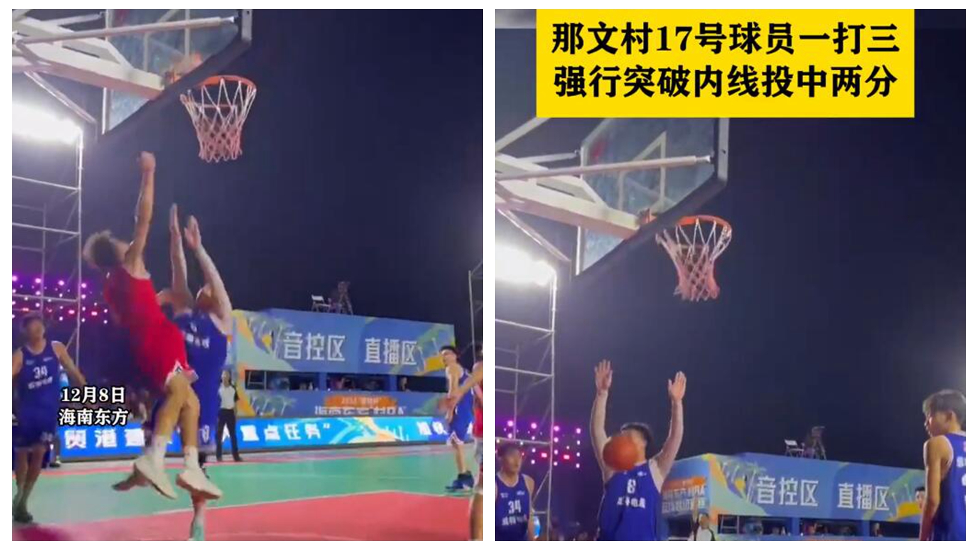 视频 | “泰裤辣”那文村17号球员一打三,强行突破内线投中两分