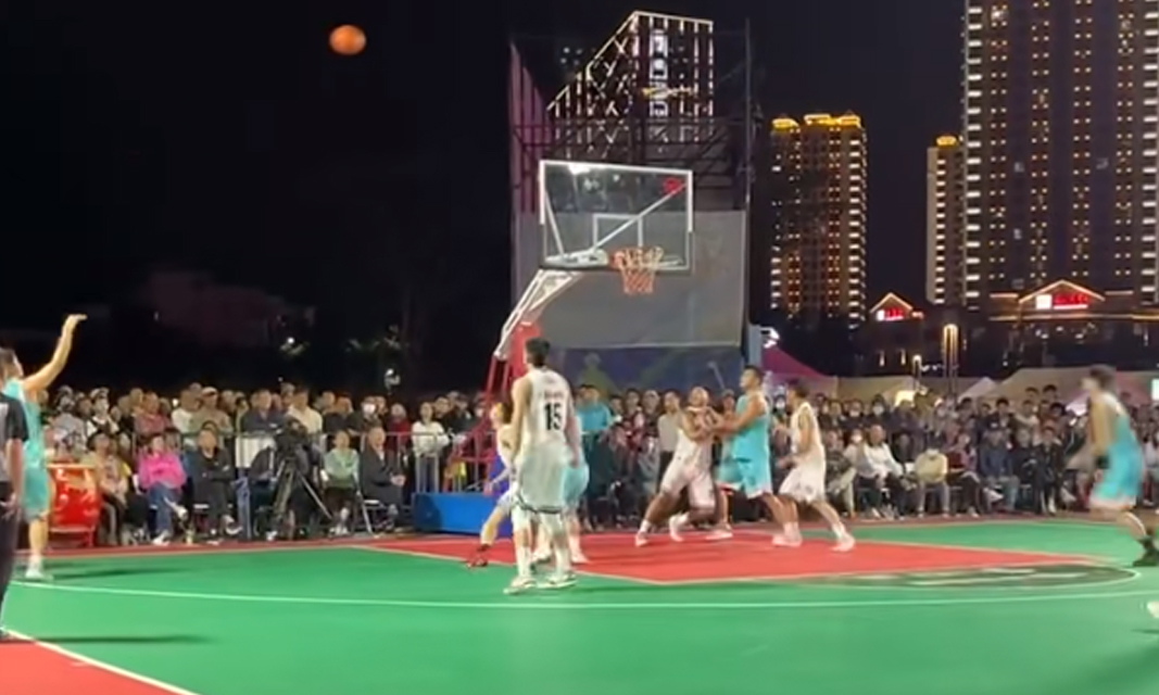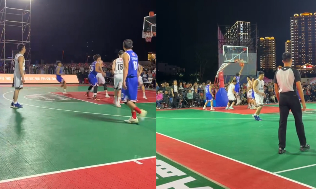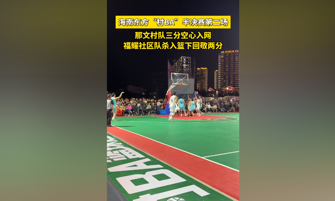 海南东方“村BA”半决赛第二场,那文村队三分空心入网,福耀社区队杀入篮下回敬两分