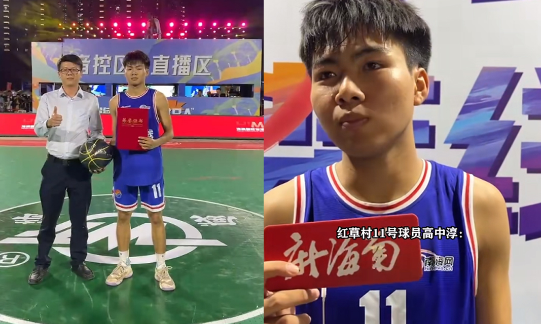 海南东方“村BA”:三家镇红草村95:67大胜感城镇陀烈村,11号球员高中淳获本场MVP,带领球队跻身决赛