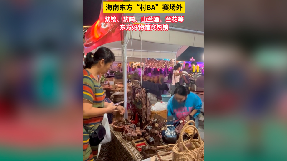 海南东方“村BA”赛场外 黎锦、黎陶、山兰酒、兰花等东方好物热销