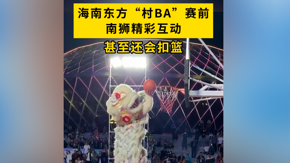 海南东方“村BA”赛前南狮精彩互动 甚至还会扣篮