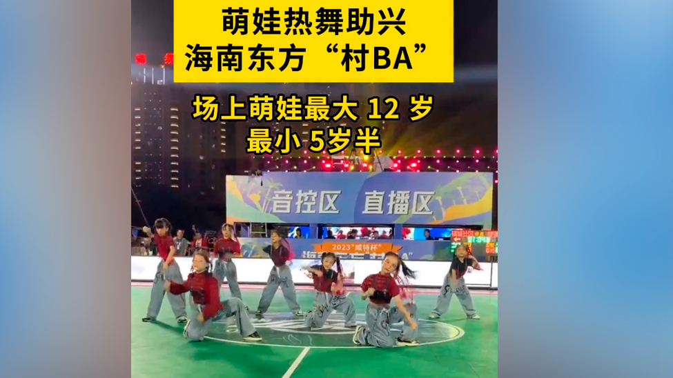 萌娃热舞助兴海南东方“村BA” 场上萌娃最大12岁,最小5岁半