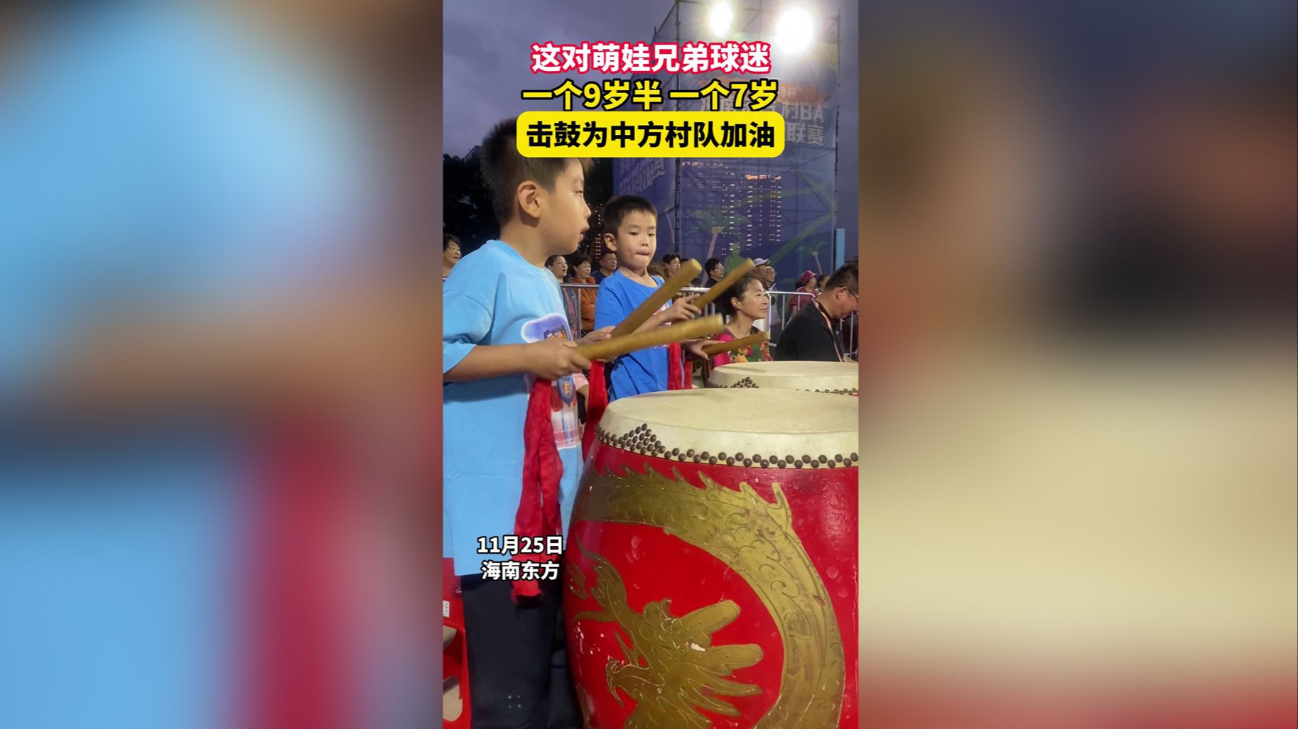 这对萌娃兄弟球迷一个9岁半,一个7岁,击鼓为中方村队加油