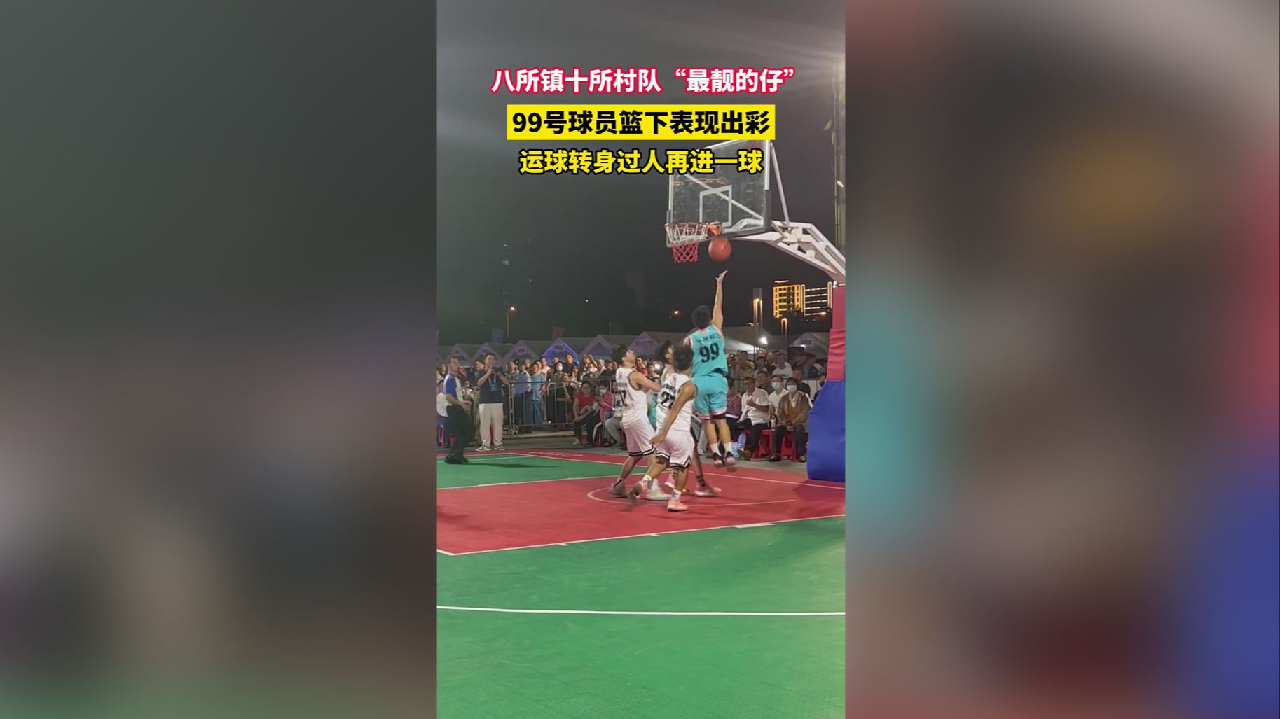 八所镇十所村队“最靓的仔”,99号球员篮下表现出彩,运球转身过人再进一球