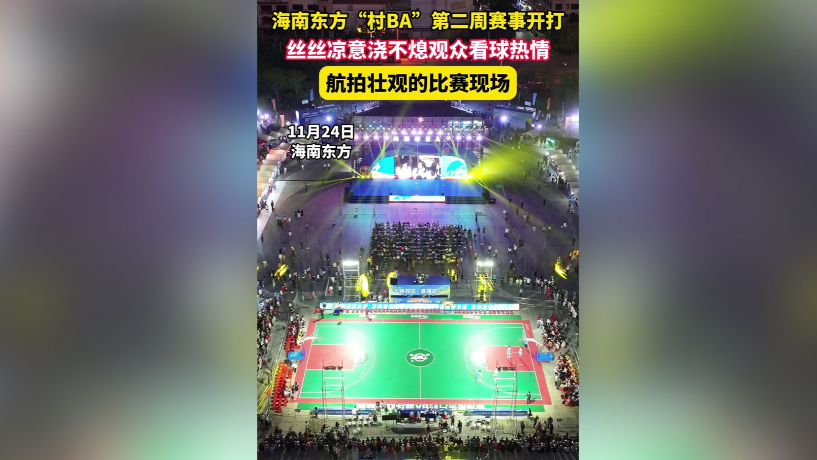 海南东方“村BA”第二周赛事开打,丝丝凉意浇不熄观众看球热情,航拍壮观的比赛现场