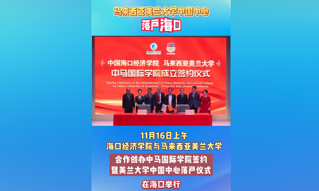 海口经济学院与马来西亚美兰大学合作创办中马国际学院签约暨美兰大学中国中心落户仪式在海口举行